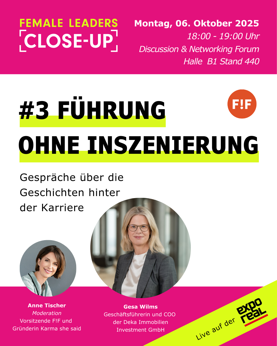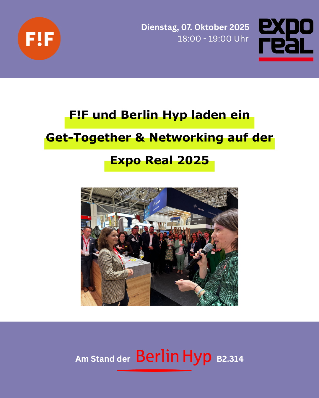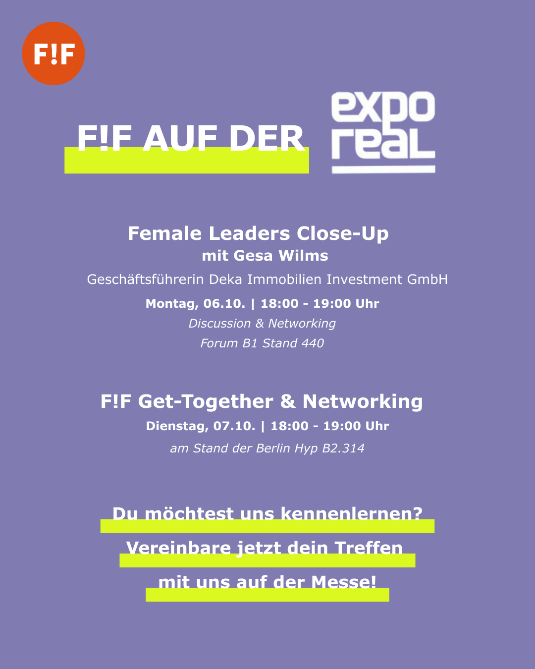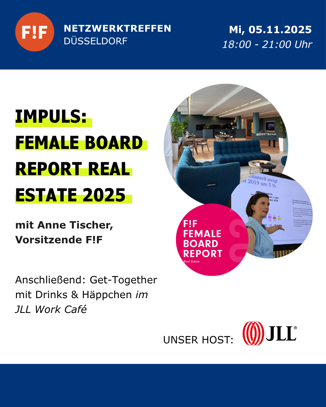 Das ist das Ziel der Initiative FRAUEN !N FÜHRUNG (F!F). Als gemeinnütziger Verein 2019 in Frankfurt am Main gegründet setzt sich die Initiative für mehr Frauen und mehr Vielfalt in den Führungsebenen der deutschen Immobilienwirtschaft ein.