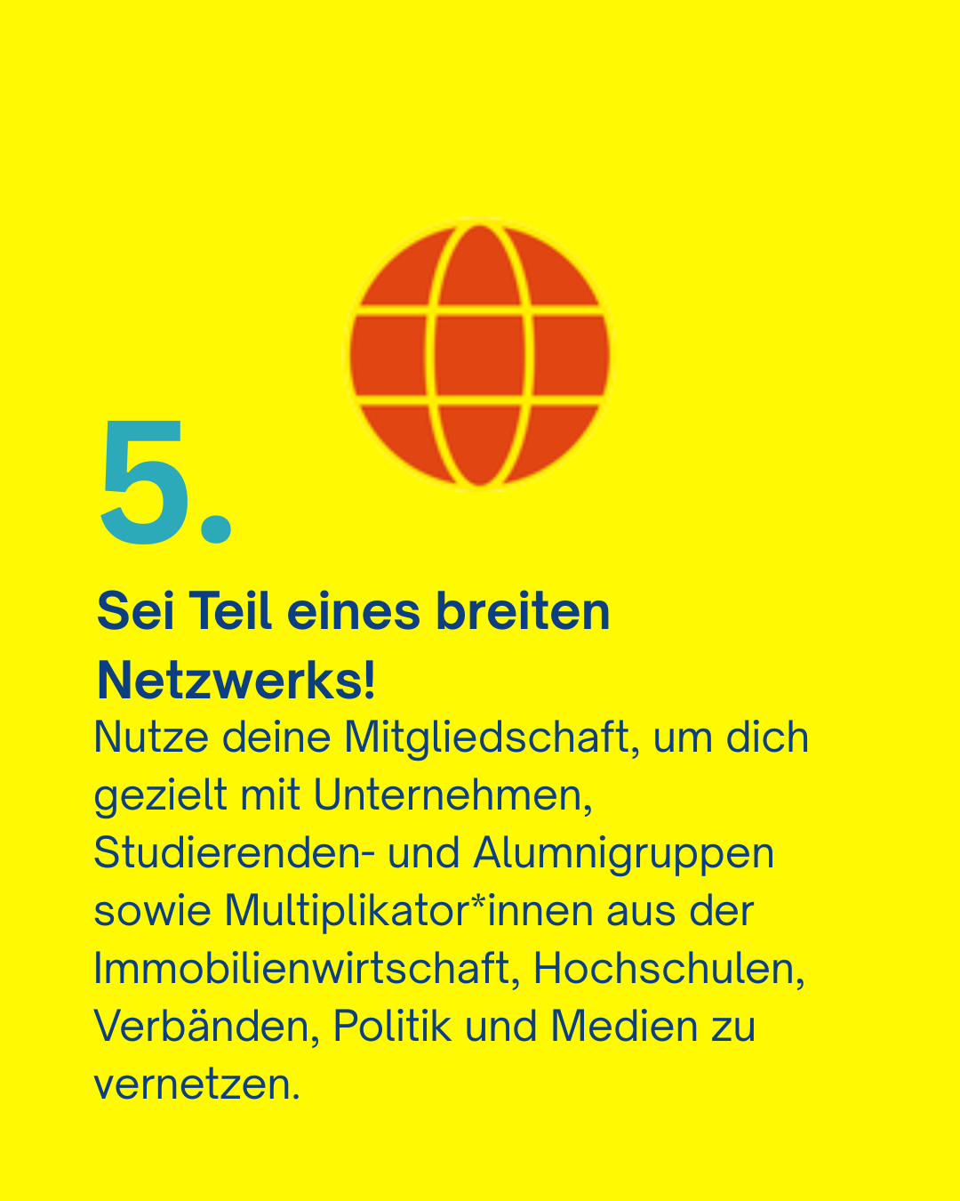 Wir holen Impulse und Perspektiven von außerhalb der Immobilienwirtschaft in die Mitte der Branche. Wir binden Expertinnen aus Wissenschaft, Wirtschaft und NGOs in unsere Veranstaltungen und Gremien ein.