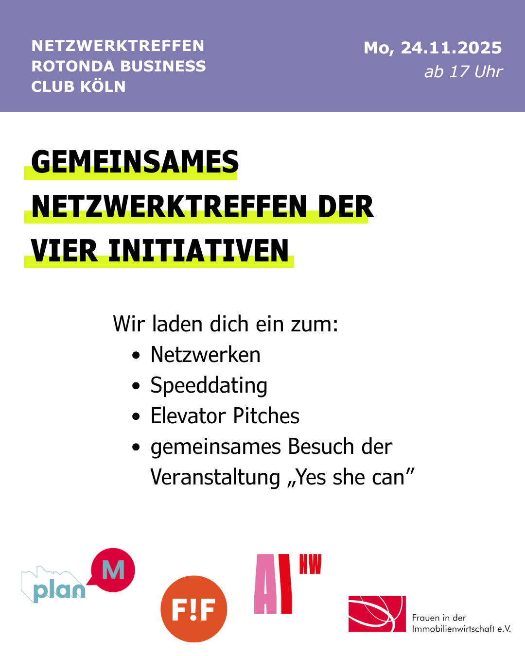 Wir treiben den kulturellen Wandel in der deutschen Immobilienwirtschaft voran. Mehr weibliche Perspektiven in den Führungsebenen für bessere, nachhaltigere Entscheidungen und eine zeitgemäße und zukunftsfähige Branche.