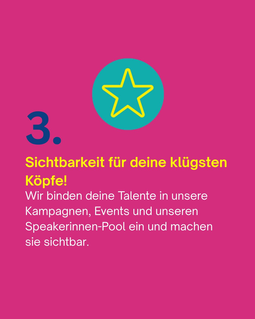 Wir bringen die Expertise von Frauen auf die Bühnen der Branchenevents. Damit sorgen wir dafür, dass in der Diskussion von Themen wie Klimaschutz, soziale und lebenswerte Städte oder Digitalisierung auch die weibliche Perspektive gehört und berücksichtigt wird.