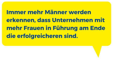 Über Aktionen wie die Male-Ally-Kampagne hier, die für eine verbesserte Sichtbarkeit sorgen. Aber vor allem, weil auch immer mehr Männer erkennen werden, dass Unternehmen mit höheren Frauenanteilen in Führungspositionen am Ende die erfolgreicheren sind.