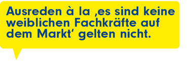 Unternehmen sollten ihre weiblichen Beschäftigten gezielt fördern, befördern und sich für Frauen auf dem Arbeitsmarkt attraktiv aufstellen. Bekannte Ausreden à la „es sind keine weiblichen Fachkräfte auf dem Markt“ gelten nicht und die Unternehmen können ja selbst viel für die Entwicklung der eigenen weiblichen Nachwuchskräfte tun.